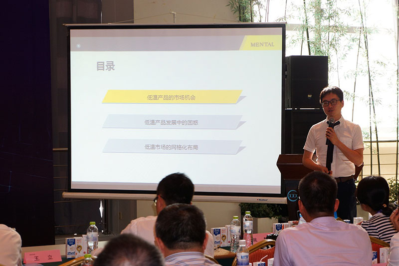 上海铭观乳业营销咨询有限公司总经理刘骥作了 低温如何做深度营销的报告。他首先介绍了低温产品的市场机会,2015年乳业销售额滚动增长率是4.4%,首次低于GDP增长率,可以说乳品行业增速真正放缓了。在这种形势下,通过分析渠道销售额增幅和重要性,可见未来的市场机会在便利店和食杂店。但是,行业人员要意识到,在中国,推动品类发展的关键因素,不是消费者的认知,而是厂商的集中引导。比如巴氏奶,市场贡献率(重要性)较小的区域并不是当地人不喝巴氏奶,而是缺少企业引导。他同时向大家介绍了低温市场的网格化布局,主要引进了蛙跳式拓展基本原则、网格化经销模式、千万级别低温市场打造步骤、三个8原则等渠道经销的实战新理念。